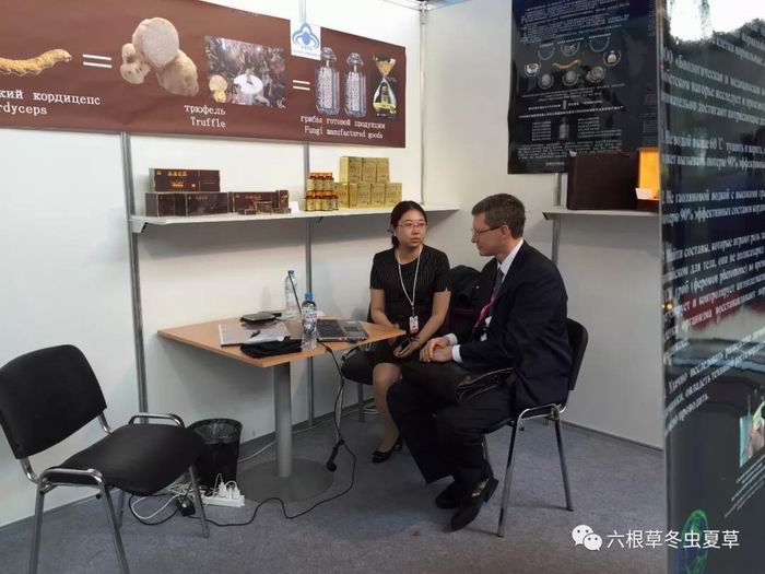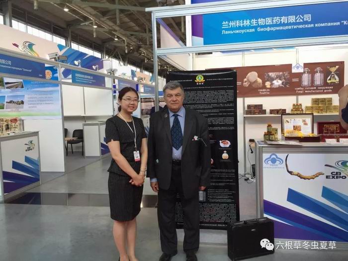 在展会上,安德列与兰州科林工作人员合影,并表示他长期在服用科林生产的冬虫夏草胶囊,效果非常好!