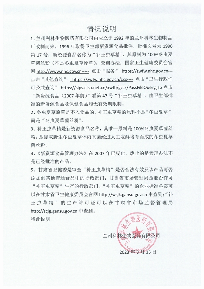 2008年 兰州科林生物制品厂改制为兰州科林生物医药有限公司,开始研究冬虫夏草抗癌原理。