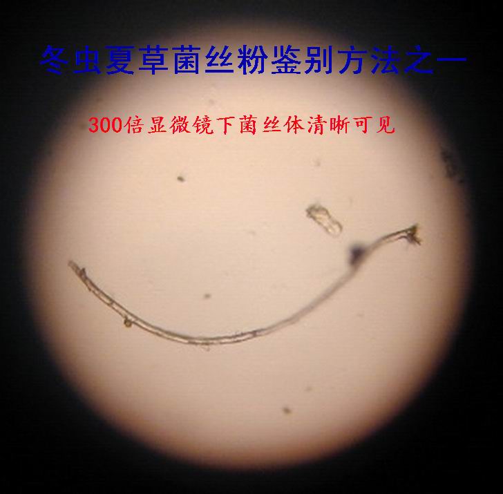 冬虫夏草作用于人体的功效成分是其虫体内的菌丝体,公司生产的冬虫夏草粉胶囊置于600倍普通显微镜下,即清晰可见条状菌丝体数万条。扩大300倍服食无毒副作用,符合国家对保健食品的安全检测。
