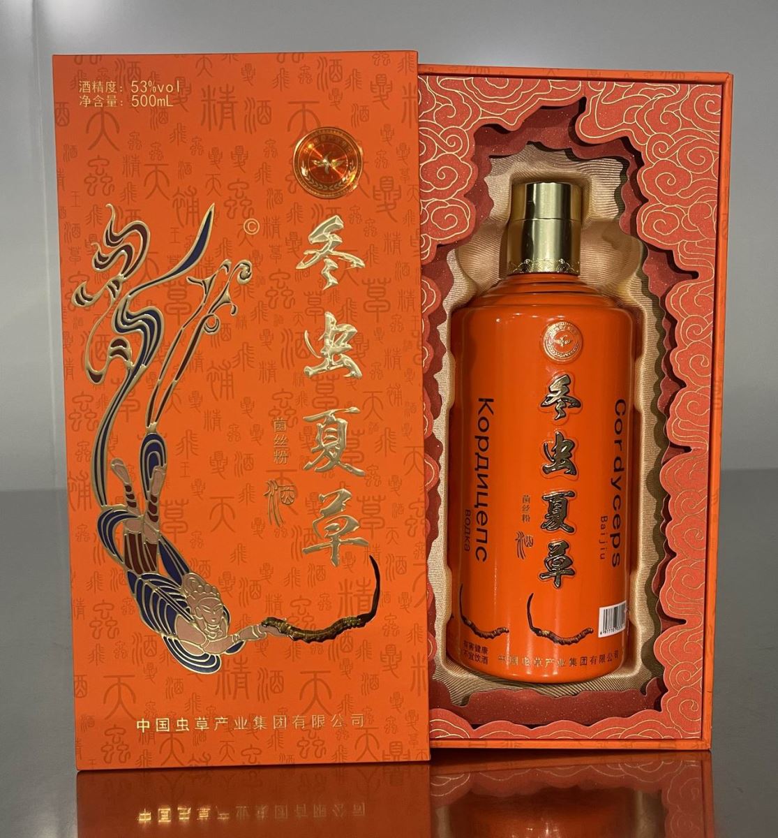 53%vol 500ml 冬虫夏草酒(国际版) 特调供世界各国 酱香型基酒、冬虫夏草菌丝粉(腺苷≥2.8mg/100ml)