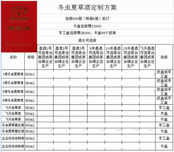 公司定制酒通过在酒的包装上融入企业的品牌元素和特色,可以提升企业品牌形象、增强客户忠诚度、降低成本、满足多元需求及增强员工凝聚力。选用真正够年份的酱香酒,再真材实料添加冬虫夏草元素,不但可以赚足面子,对得起客人朋友,同时也兼顾到了里子,对得起自己,对得起身体。